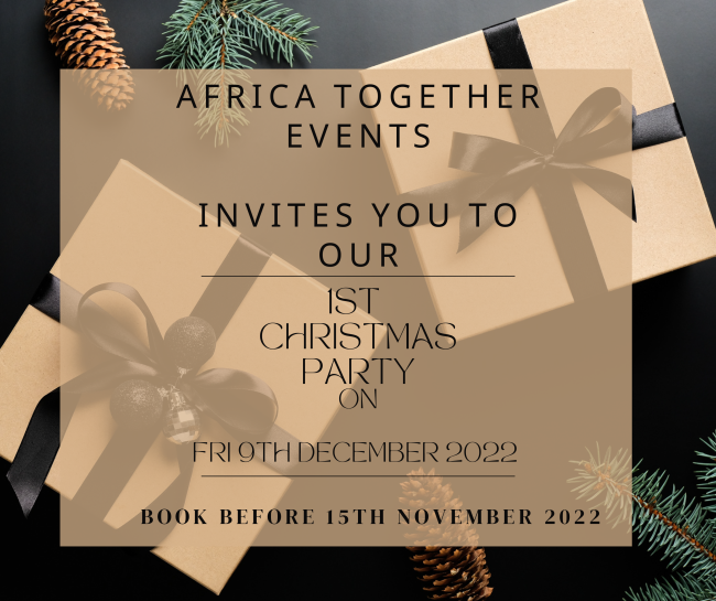 Join us for AfricaTogether’s first Christmas Party on Friday , 9th December 2022 at The Nest, Wythenshawe. Great company, drinks on arrival, and amazing African food.